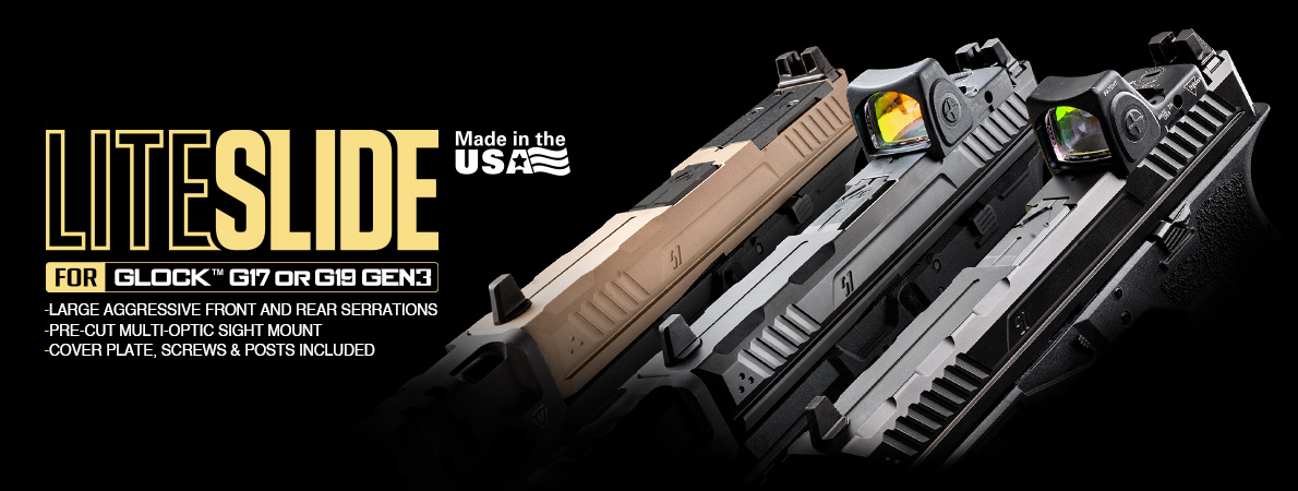 The Strike Industries LITESLIDE for GLOCK™ G17 or G19 GEN3 was created with optimal accuracy and performance in mind, perfect for any upgrade or new custom build. Made in the USA from machined billet 17-4 Stainless Steel using clockwork precision to ensure increased consistency in barrel lockup that results in levels of match-grade accuracy. The SI LITESLIDE weighs significantly less than the factory production model, reducing the recoil momentum which allows faster and more efficient follow-up placement. The SI LITESLIDE was proudly designed with durability and function in mind along with the Strike Industries stylings. Large enhanced aggressive front and rear serration areas aid in manipulating the slide to check the chamber or clear a jam. Combined with the SI Universal Optics Mount cut, you are able to mount most of your favorite optics securely with ease without needing to send your slide out to get machined. Additionally, a removable cover plate is included for your customization preferences. The SI LITESLIDE comes with all necessary screws and posts needed for most optics. The Strike Industries LITESLIDE for GLOCK™ G17 or G19 GEN3 is truly an performance and aesthetic upgrade or a great choice for a new custom build.