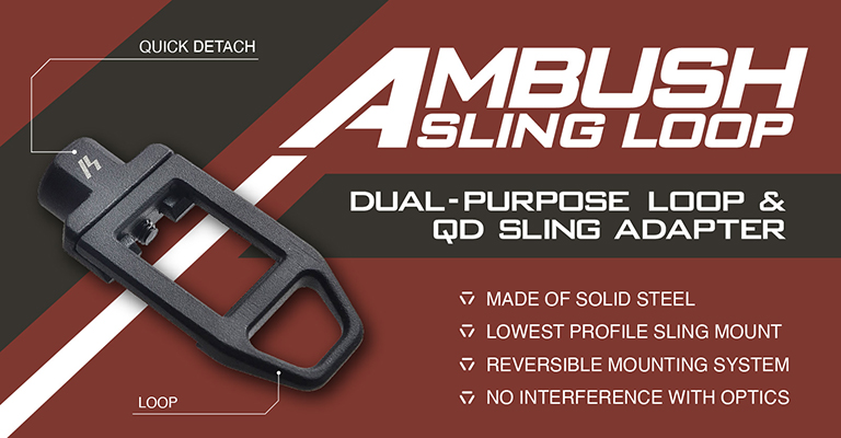 The Strike Industries Ambush is a low profile sling loop is the lowest profile sling loop designed for the MIL-STD-1913 rail. Made of solid steel, its unique locking bar design system allows for it to be lightweight and durable. Because the Ambush sits flat in between the rails, it will not interfere with your sights and fit neatly under longer optics when mounted towards the middle of the rifle. Its dual purpose loop and swivel sling attachments allow the user to choose which either mounting option. |
