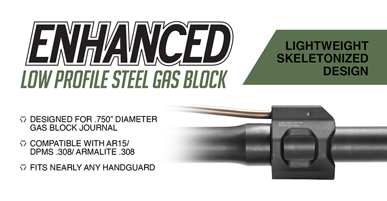 The Strike Industries Enhanced Steel Gas block combines form and function to bring you a cost effective, robust, but lightweight gas block. Designed to fit under nearly any hand guard, the low profile gas block is a must have when running extended length free float set ups. The faceted design not only is cosmetically attractive, but the geometry adds strength where it is the most critical, while the skeletonized form factor saves weight.