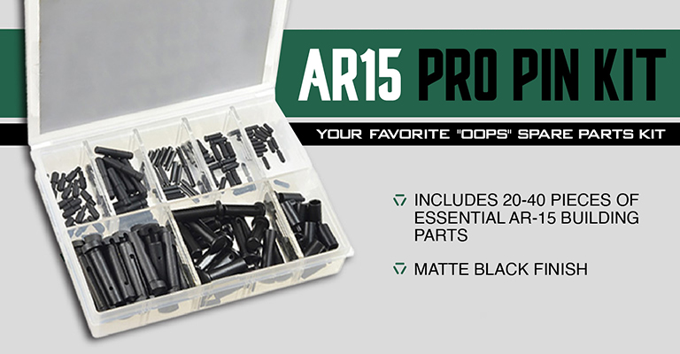 The Pro Kit contains takedown and pivot pins, takedown and pivot pin detents, hammer and trigger pins, selector detents, trigger guard roll pins, bolt catch roll pins and bolt catch plungers. If you're looking to assemble some stripped lower receivers or to replace worn out pins and detents.