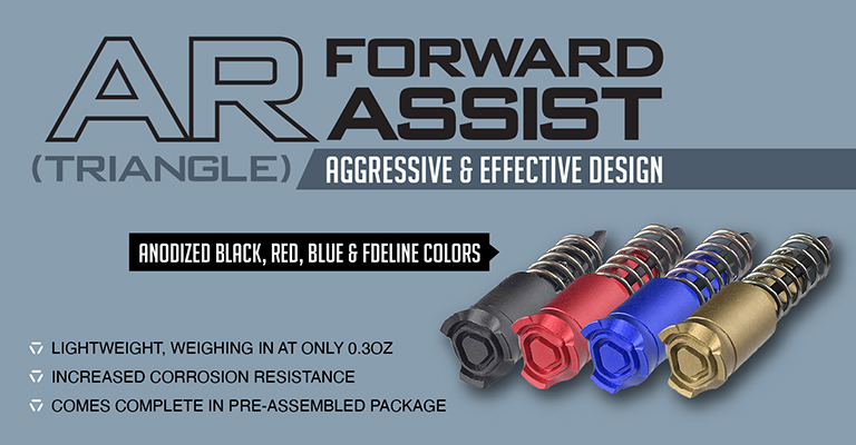 Made of lightweight aluminum, this forward assist weighs in at only 0.2oz and comes with a complete pre-assembled package including the plunger, pawl, enhanced spring, and spring pin.