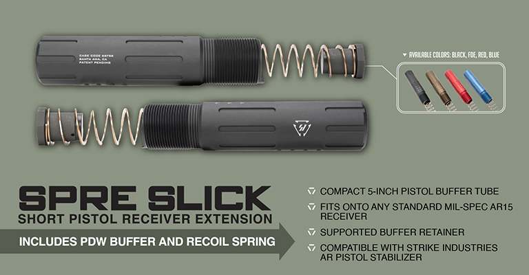 - Also compatible with Strike Industries AR PDW 9mm Buffer / AR Flat Wire Spring Pistol Length