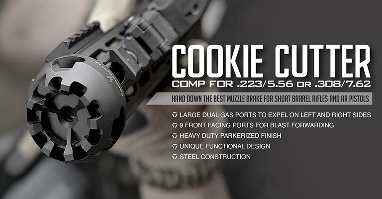 The COOKIE CUTTER COMP is, hands down, the best muzzle brake for compensating muzzle rise and recoil on Short Barrel Rifles (SBR's) and AR-Pistols. It is NOT a flash suppressor. There will be significant side concussion so the shooter needs to be aware of hand placement and surrounding personnel!!!