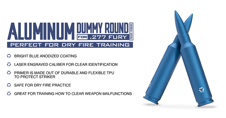 This is the Strike Aluminum Dummy Round for the .277 Fury Caliber. Designed with the SIG SAUER XM7 Rifle in mind (US Army Variant of the MCX Spear), we had this product tested and evaluated by SIG and they've confirmed this dummy round's compatibility with the XM7 along with the SIG Cross (Bolt Action) rifle as well.