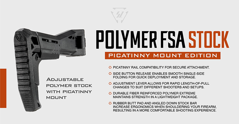 The Strike Polymer FSA (STOCK) is a lightweight, user-focused solution designed for fast deployment and adaptable weapon configurations. Engineered to mount directly to a Picatinny rail, this folding stock adapter delivers secure attachment, comfortable ergonomics and dependable performance without unnecessary complexity.